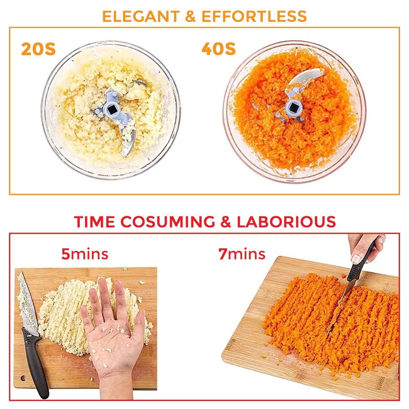 - 【Durable Manual Garlic Chopper 】 – The stable, non-slip base of the premium hand chopper prevents the chopper from slipping off the counter and the transparent bowl makes it easy to see the degree of chopping. Additional blender can mixe/blend the ingredients effectively.